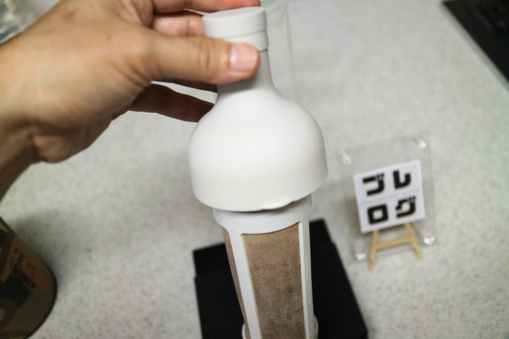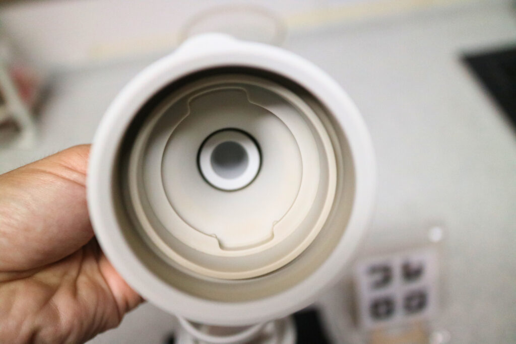 ストレーナーをセットしたシリコン製上蓋を、ガラス製本体に挿入してセットします