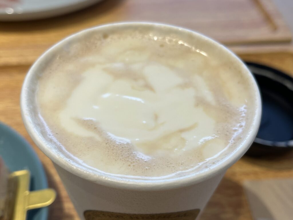 かき混ぜて2口目、チーズ感は無くなりましたが、コクのあるカフェラテになりました。