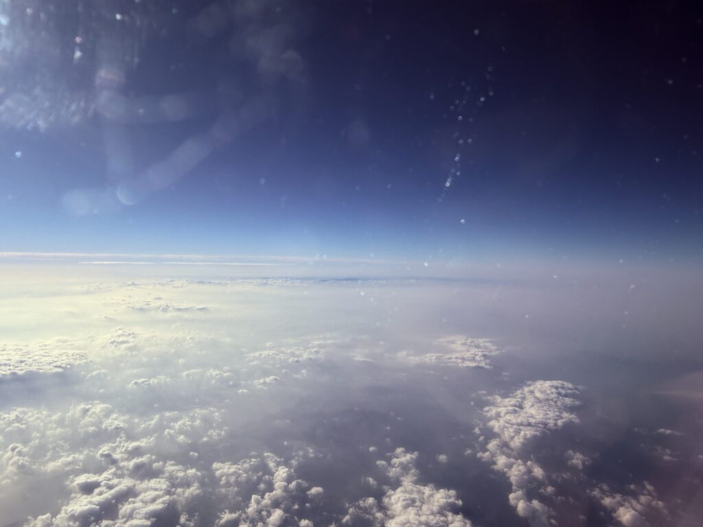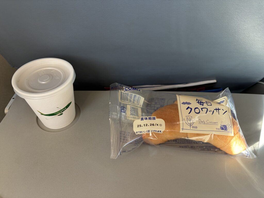 順調に飛行機は離陸し、途中飲み物とクロワッサンのサービスがありました。
