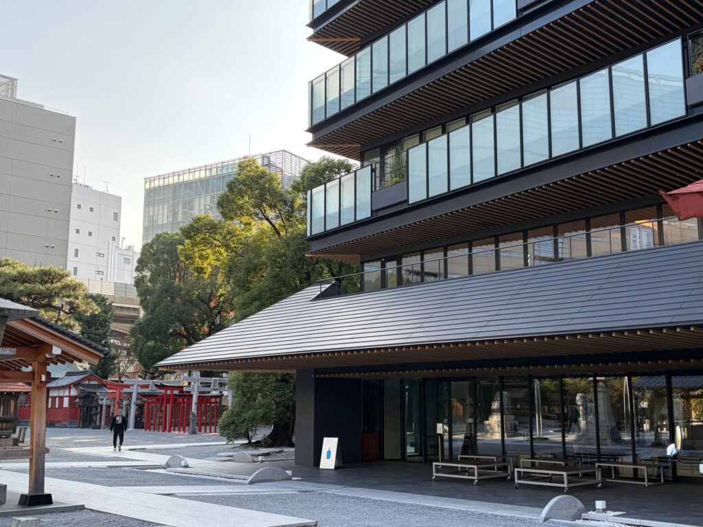 神社の社務所ビルというだけあって重厚な屋根が特徴的な外観となっています。