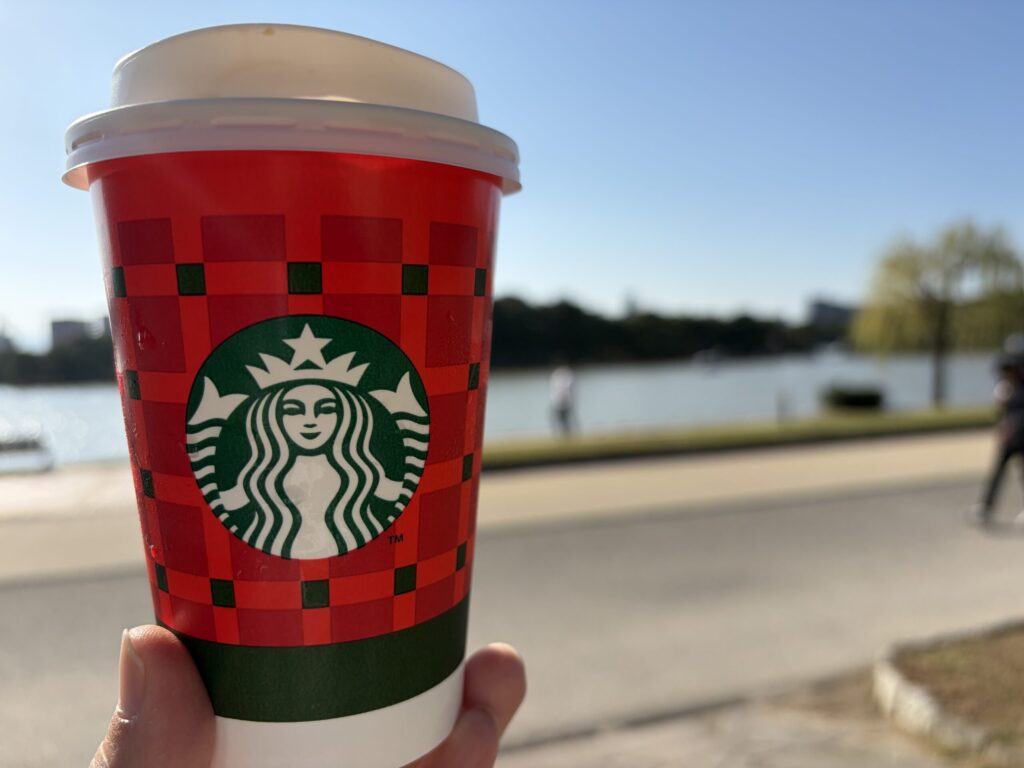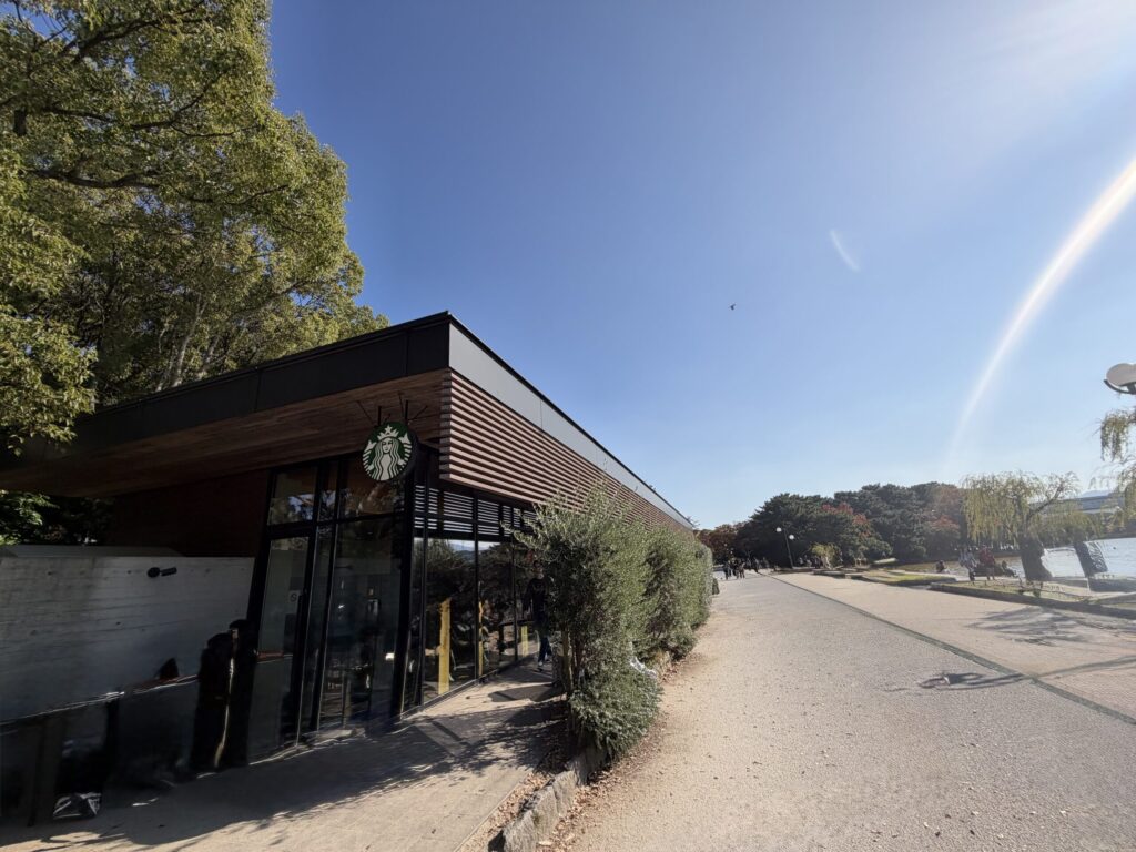 店舗は池の辺りにあり、景観を損なわないように配慮した店舗となっており、ここら辺がスタバらしさといったところでしょうか。