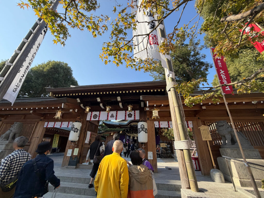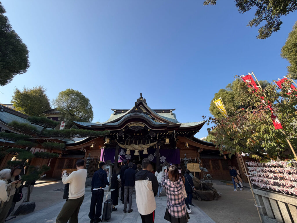 古くから慕われている、福岡で有名な神社のためか、たくさんの人が訪れていました。